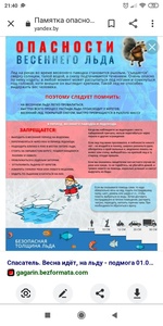 Уважаемые родители. Напомните детям правила безопасного поведения в весенний период во время таяния льда. Сами не выходите на весенний лёд и не допускайте выхода на лёд детей.