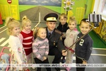 В рамках профилактической акции «Жители страны «Дорожная» они пригласили на урок дорожной безопасности не только своих младших товарищей – дошколят, но и старшего госавтоинспектора отдела ГАИ Витебского РОВД Илью Войтова.